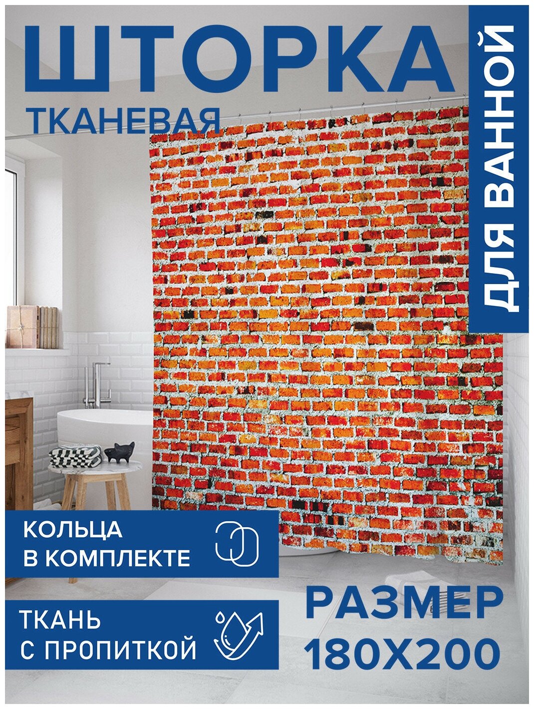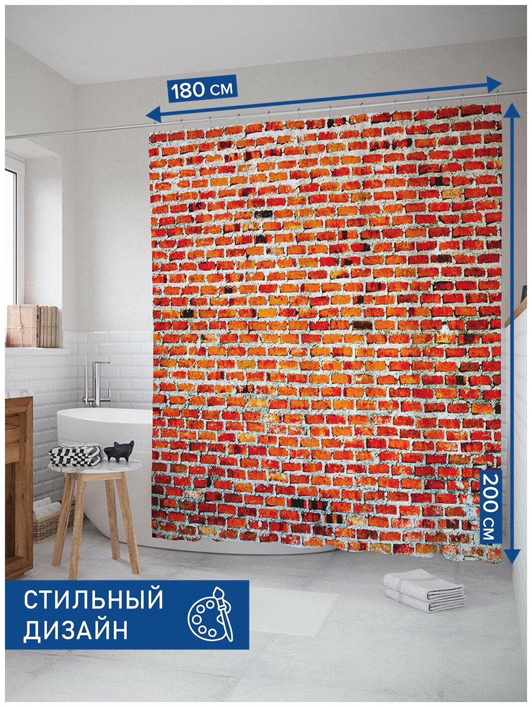 Модель: Штора для ванной Кирпичная стенка 180х200 см
