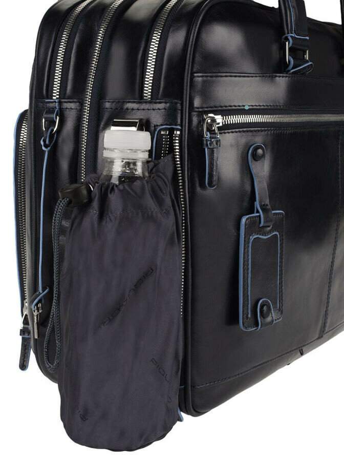 Сумка Piquadro Blue Square изготовлена из натуральной телячьей кожи, сочетающей в себе элегантный внешний вид и высокую прочность. Она обработана вручную с применением традиционных технологий и с использованием натуральных материалов. Это делает материал очень надежным и долговечным, а также полностью безопасным для человека. Удобная компоновка. В сумке предусмотрены внутренние отделения с мягкой подкладкой для безопасной транспортировки ноутбука и 10-дюймового планшета. Наружные карманы с отдельными застежками отлично подходят для хранения компьютерных гаджетов. При необходимости пользователь может расстегнуть «молнию» в нижней части, значительно повысив вместимость основного отсека.Встроенный органайзер. Небольшие внутренние карманы обеспечивают быстрый доступ к мелким предметам – в том числе смартфону, ручкам и банковским картам.Универсальное применение. Сумку можно брать с собой в длительные путешествия – она снабжена длинным наплечным ремнем, застежками с отверстиями для замка, прочными металлическими ножками и багажной биркой.