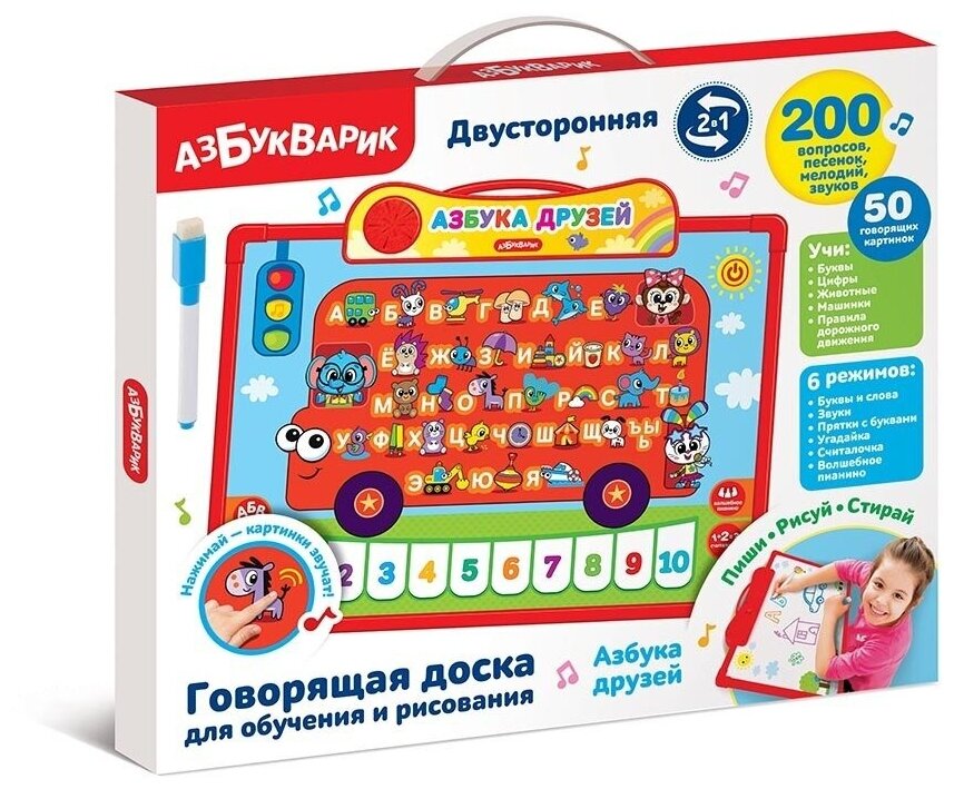 Интерактивная двусторонняя говорящая доска «Азбука друзей» – для веселого современного обучения! Доска с азбукой и цифрами приглашает в весёлое приключение в мир знаний!