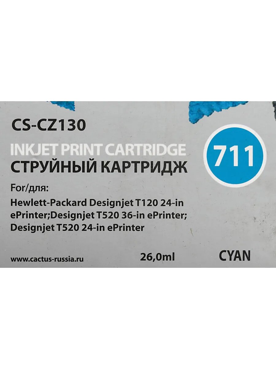 Картридж Cactus CS-CZ130 для HP DJ T120/T520 (голубой)