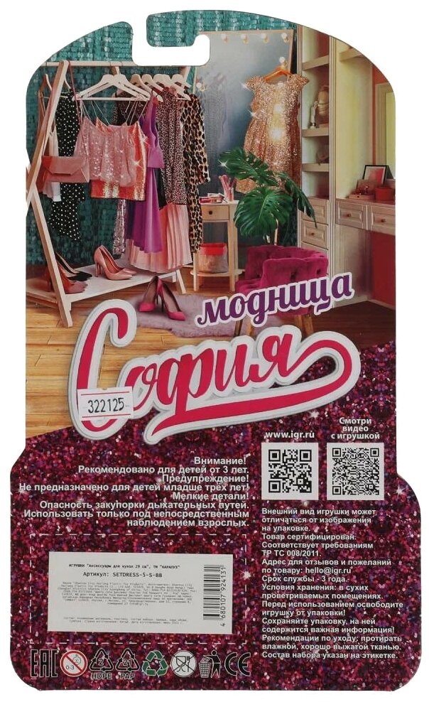 Благодаря этому набору любимая кукла вашей малышки сможет попробовать новый модный образ. Стильный наряд и аксессуары вдохновят девочку на новые сюжеты для игр.