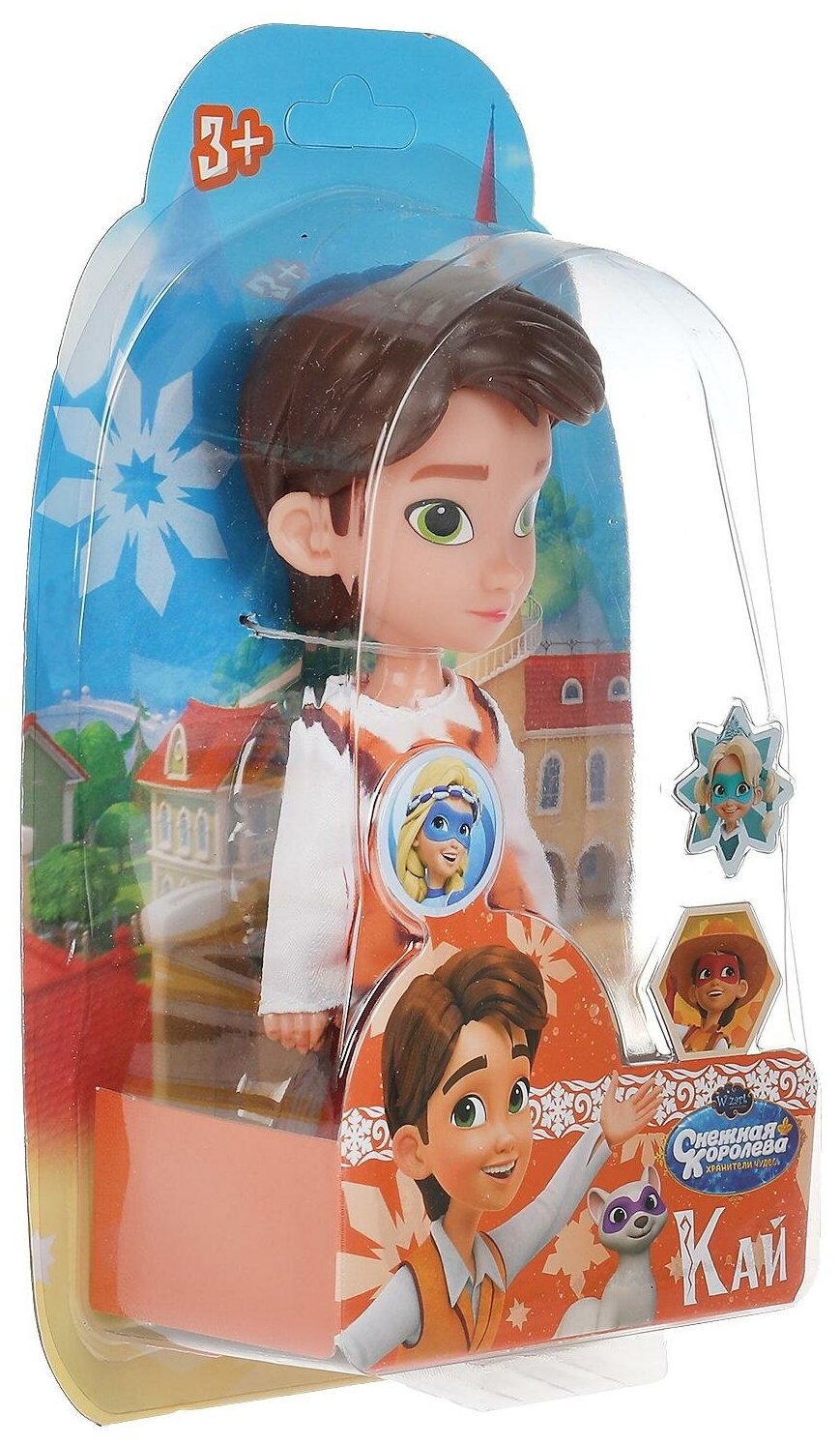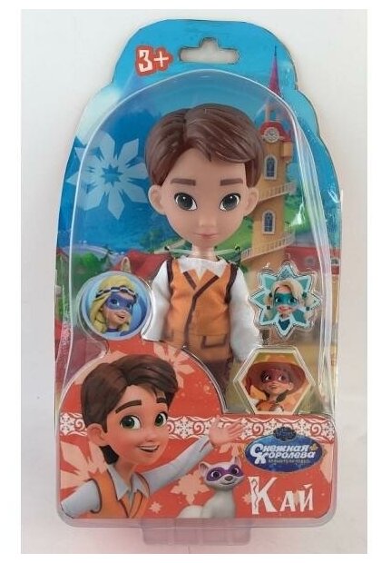 Кай одет в кофту с имитацией белой рубашки и оранжевого жилета, а также тёмные брюки. Одежда легко снимается и надевается. У куклы детально проработанное лицо и большие выразительные глаза.
