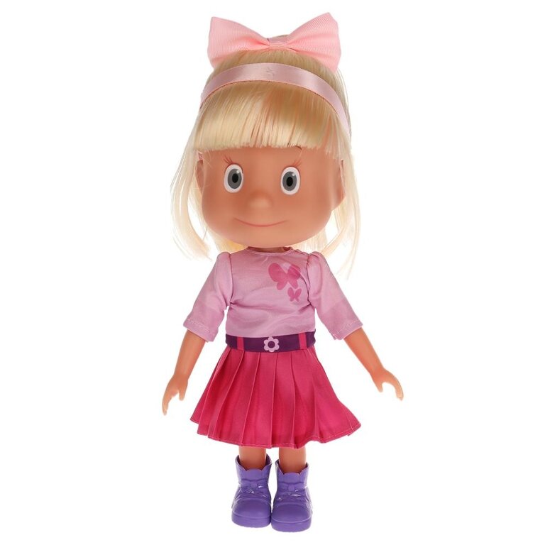 Мэри одета в розовое платье с имитацией кофточки и юбки. Образ героини дополняют ободок и бант на голове. Одежда и аксессуары легко снимаются и надеваются. У куклы детально проработанное лицо и большие выразительные глаза. Шелковистые волосы Мэри уложены в высокий хвост, в точности как в мультсериале.
