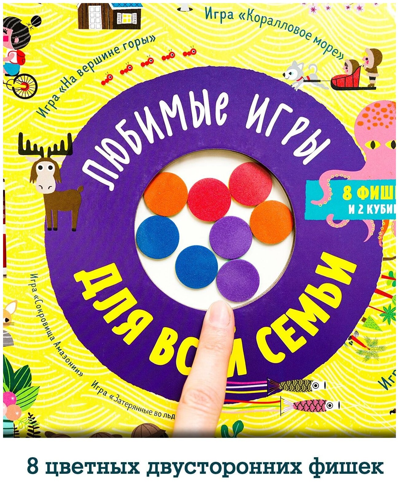 Любимые игры для всей семьи - это целая сокровищница увлекательных игр. Такого формата вы еще не видели: фишки, кубики, 5 настольных игр и понятные правила - всё в одной книге. Обложка и страницы из прочного плотного картона с ламинированной глянцевой поверхностью. Такая книга не помнется, ее удобно взять с собой в гости и в дорогу. В играх могут участвовать от 2 до 6 игроков, одна игра длится от 15 до 25 минут.