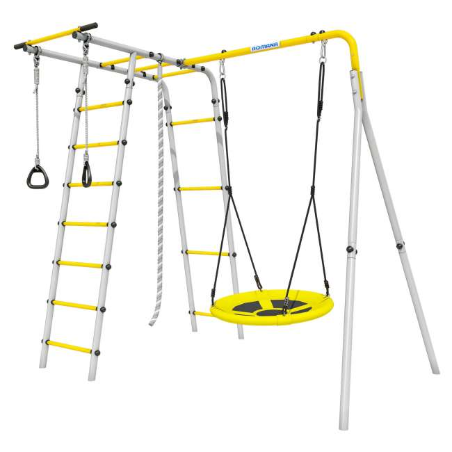 | Комплектация | рукоход, турник, качели гнездо, канат, кольца гимнастические |