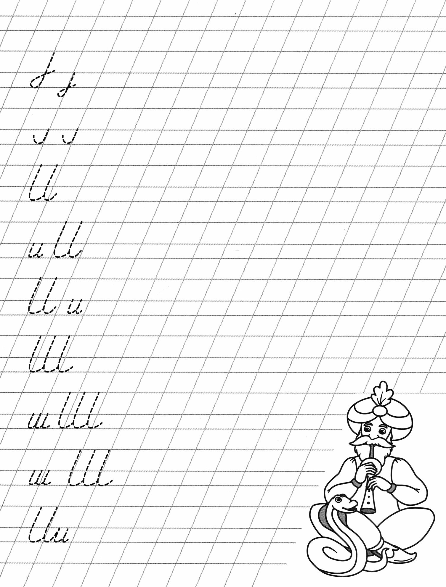 - Написание элементов букв и буквенных соединений с наклоном на широкой узкой линеечках.