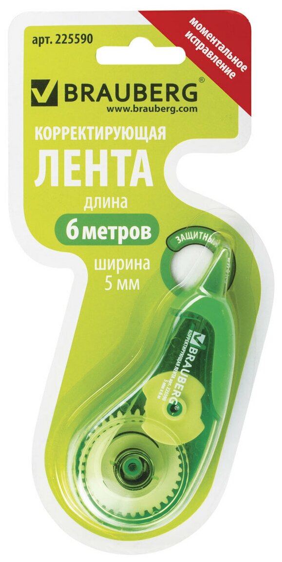 На сегодняшний день товар «Корректирующая лента (5х6м зеленый корпус) (225590) Brauberg» можно купить с кешбеком в 1 магазине: Яндекс.Маркет