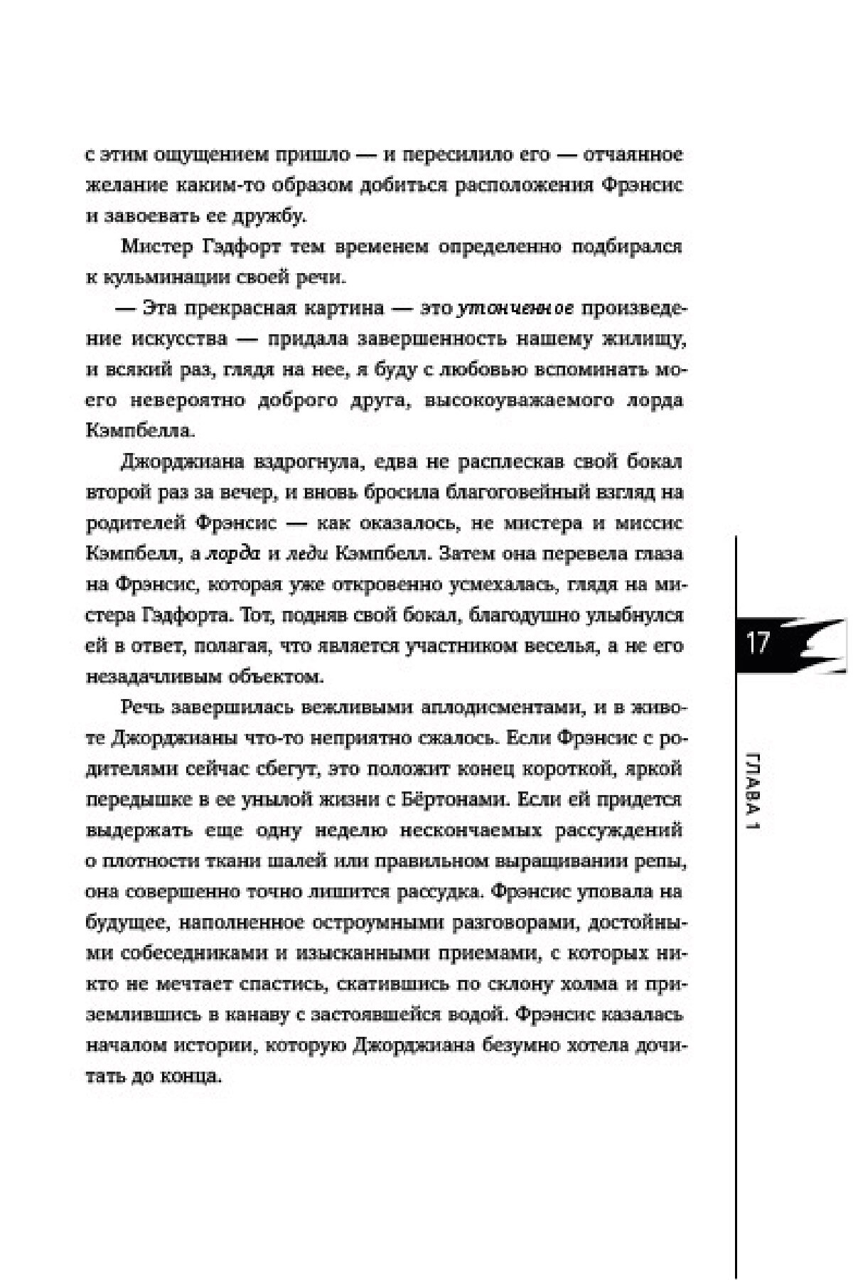 Обожаю литературу про эпоху Регентства! Джейн Остин и Джорджетт Хейер - одни из любимых писательниц. Но круто, что тут про первую половину 19 века все-таки пишет современный автор. Соответственно меняются и персонажи, чего стоит Джорджианна одна. И мне очень понравилась обложка, гораздо круче оригинальной. Рекомендую!