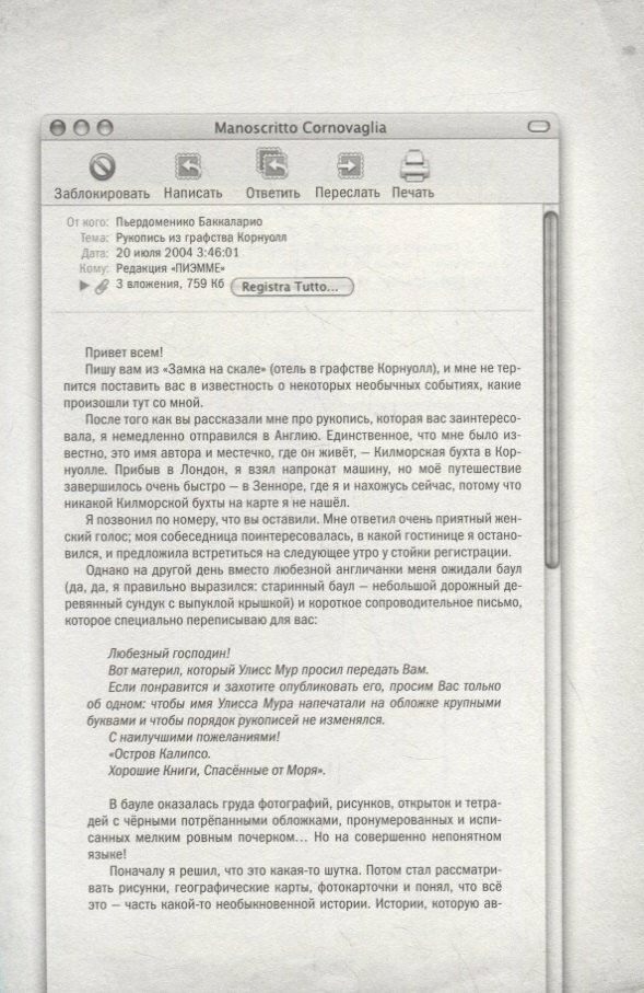 У вас в руках первый из двенадцати секретных дневников загадочного Улисса Мура, которые сотрудник нашего издательства нашел на старинной вилле "Арго". Сам Улисс Мур исчез при невыясненных обстоятельствах, но оставил ключи и подсказки для тех, кто сможет прочесть его дневники. Наградой станет невероятное путешествие через время и пространство, полное опасностей и риска. Серия "Секретные дневники Улисса Мура" придётся по вкусу всем кто любит приключения, тайны и загадки.