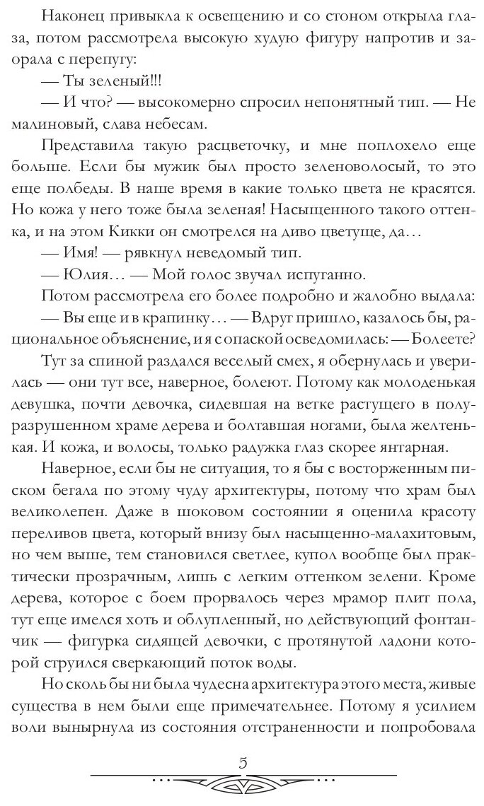 Если вас перенесли в другой, с виду прекрасный мир - не спешите радоваться. Даже если предлагают работу в Изумрудном городе, во дворце и прямо по специальности. Ибо кто знает, какие там порядки? Особенно если население сплошь наги, разумные пауки, метаморфы-ниоры, привидения и много кто еще. Поговаривают, что из редких зверей стилистов там варят декокты, а последние популяции человейков доживают свой век в зоопарках. Возникает вопрос: не съедят ли там на завтрак симпатичного психолога с неполным высшим?! Тем более что перед тем самым психологом, Юлей Аристовой, стоит неподъемная задача: сделать местных пупырчатых, чешуйчатых, хвостатых дам ужасно привлекательными, ну, или так повысить их самооценку, чтобы не пасовали перед эльфийской делегацией. А параллельно - разобраться с двумя очень влиятельными персонами, которым вдруг понадобилась помощь специалиста: эльфом, Хозяином Медной горы, и кикимором, внуком богини, главным советником правителя Гудвина.