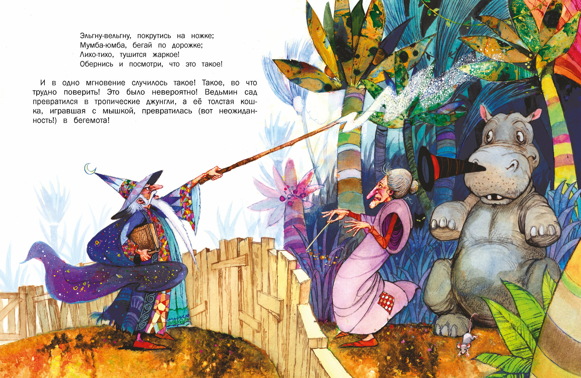 Вы никогда не замечали ничего странного в людях по соседству? Возможно, видели, как кое-кто летал на пылесосе в лунную ночь или превращал в своем саду кота в бегемота? Не стоит бояться! Оказывается, магия может помочь справиться с трудностями, стать храбрым и найти новых друзей! Сказки, которые проиллюстрировал известный английский художник Джон Пейшенс, перенесут вас в невероятный и волшебный мир колдунов и ведьм.