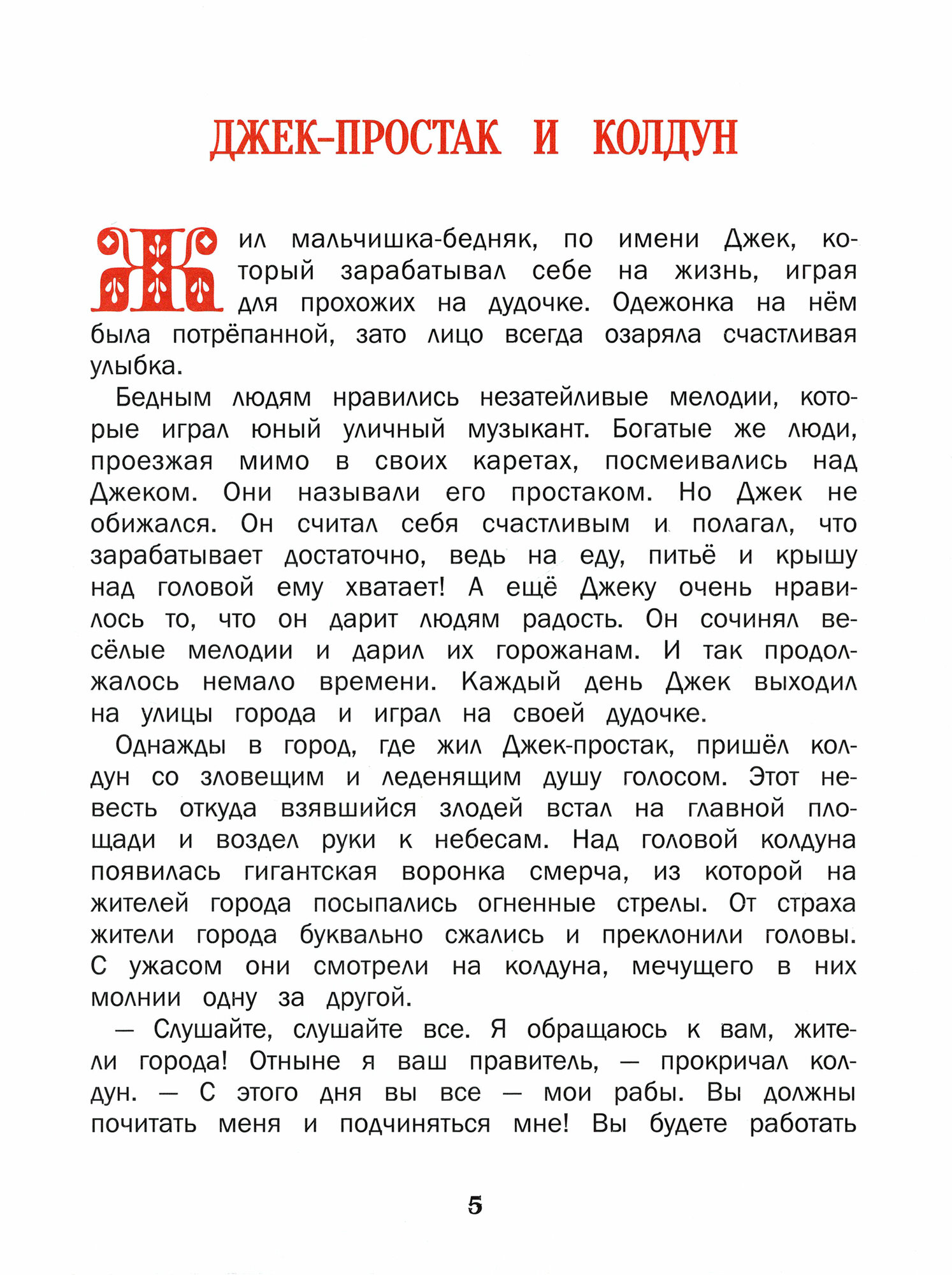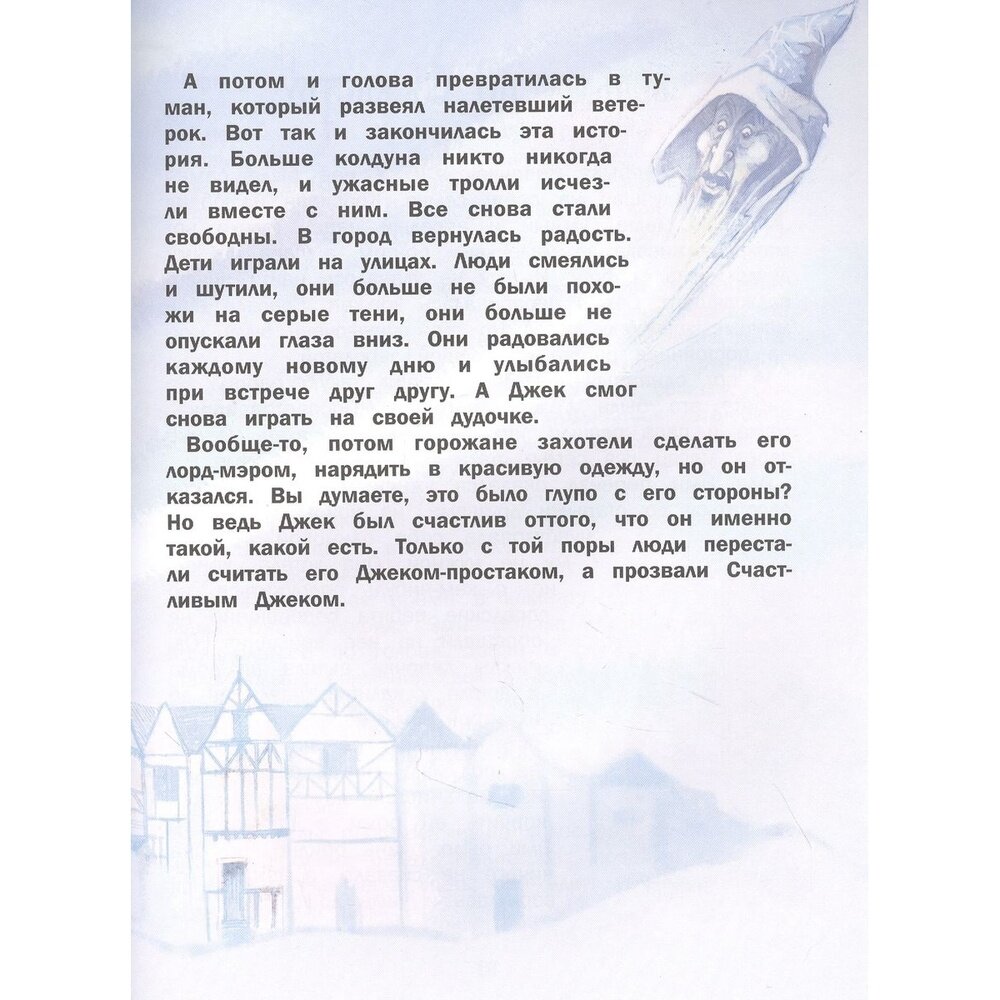 В одном городе жил бедный мальчишка Джек, который очень любил музыку и зарабатывал на жизнь, играя на дудочке для прохожих. Но однажды в этот же самый город пришел злой колдун, который захватил всю власть и объявил людей своими рабами. Он запретил им смеяться и улыбаться, играть на улицах, а также полностью запретил любую музыку. В городе настало ужасное время. Жизнь людей стала серой и скучной. Но все их просьбы снять запреты не имели у злодея никакого успеха. И тогда Джек решил, что терять ему нечего. Он отправился к замку колдуна и заиграл на своей дудочке. Как вы думаете, что после этого произошло? Что колдун сделал со смелым музыкантом? Не буду говорить вам, чем окончилась эта история, но скажу, что музыка помогла людям понять, кто кем является на самом деле.