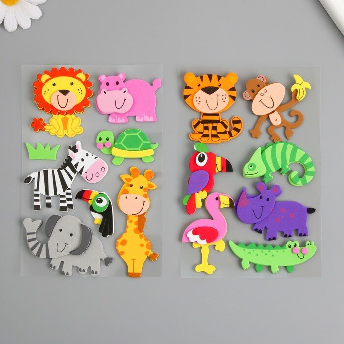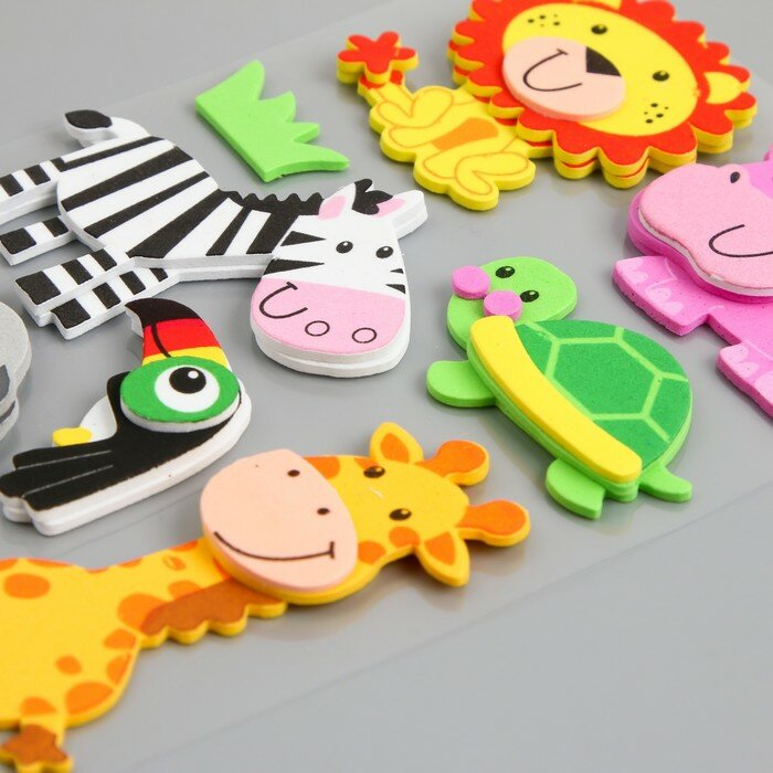 В наборе объемные фигуры из мягкого пластика EVA, фигуры 2-х или 3-х слойные с печатью на каждом слое и дополнительными эффектами. Каждая фигурка имеет клеевой слой.