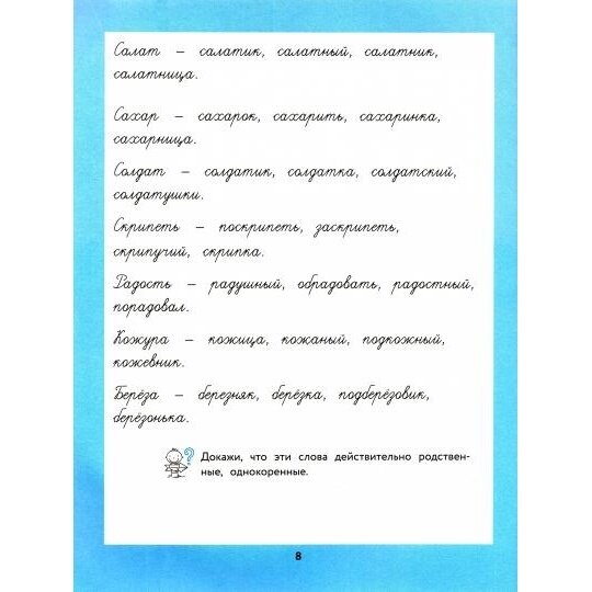 Отставание в речевом развитии приводит к трудностям усвоения школьной программы по русскому языку, в итоге - к дизорфографии. Пособие представляет поэтапную работу, направленную на осознание понятий: однокоренные (родственные) слова, слова с омонимичными корнями, чередование согласных в корне слова, форма слова, сложные слова.