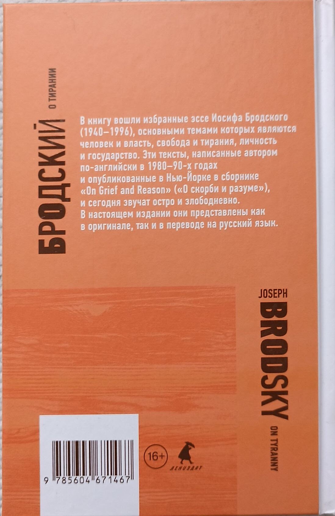 Книга: О тирании. On Tyranny (Бродский Иосиф Александрович); Лениздат, 2022