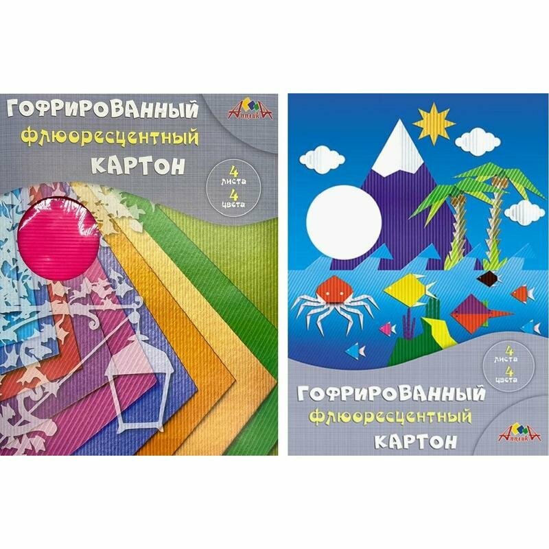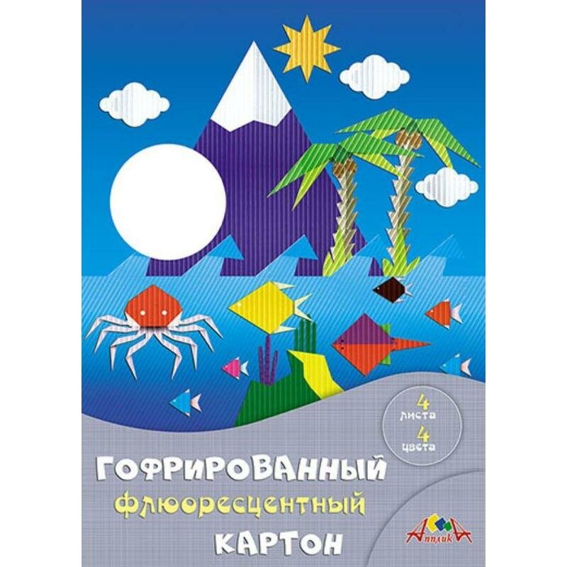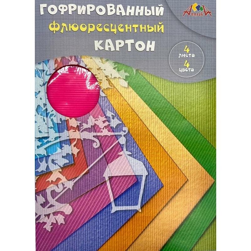 Цветной гофрированный флуоресцентный картон 4 листа, 4 цвета ТМ Апплика.