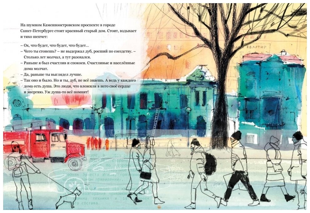 Необычная книга. Рассказ ведет один особняк в Санкт-Петербурге на Каменноостровском проспекте, который стоит там еще с 1849 года. Он рассказывает свою историю дубу - тоже долгожителю. И рассказывает особняк о своей долгой жизни: о своем расцвете при семье Вяземского, потом о том, как его превратил в ресторан известный купец Игель, но хозяева умирали, а здание оставалось и перестраивалось дальше: в нем проводились и концерты, литературные и педагогические собрания. Застал особняк и КПСС, а дальше - перестройка, и не просто здания, а страны. Так, пройдя через столько времени, хозяев и перестроек, особняк стал памятником. Памятником, который в прямом смысле рассказывает историю с далекого 1849 года. Однако оно было уже не таким новым и свежим, у него не было хозяина, за ним никто не ухаживал, оно давненько стояло без дела и было заброшенным, его обокрали, разрисовали стены, оно даже потерпело пожар. Однако девушка по имени Наталия Сергеевская, о которой вы узнаете в самом начале книги, горела идеей организовать театр для подростков, тем самым спасла памятное здание и исполнила мечту. Книга достаточно узкого спектра, но в этом и ее необыкновенность. Она преследует цель "спасти" и рассказать о независимых театрах по всему городу, один из которых поселился в том самом особняке.
