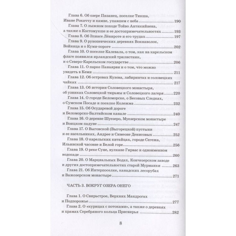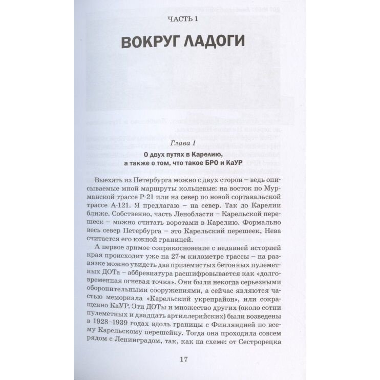 Этот авторский путеводитель выходит в год столетия образования Республики Карелия. Книга содержит сведения не только о туристических маршрутах и достопримечательностях, которыми богата эта земля, но и об истории Карелии и северо-востока Ленинградской области, здешних легендах и удивительных людях. Именно здесь была собрана подавляющая часть рун, составляющих эпос «Калевала», здесь, в Заонежье, жили знаменитые русские сказители, в частности, Ирина Федосова и Трофим Рябинин, сохранившие для нас множество русских былин, песен и плачей.