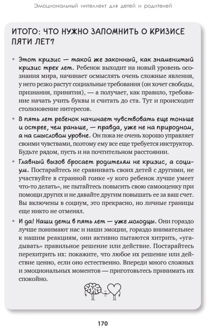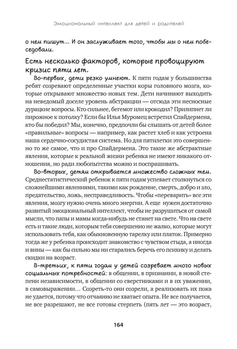 Без преувеличения одна из лучших книг о воспитании! До знакомства с ней сложно поверить, что эмоциональный интеллект - это действительно обо всем. Очень тонко, мудро, понятно и наглядно о том, как оставаться в контакте с ребенком, уметь договариваться с ним и справляться с любыми детско-родительскими сложностями на всех этапах жизни: кризисы разного возраста, капризы, настроение, школа и уроки, поиск призвания и гаджеты...проще сказать чего в этой книге нет. Она определенно должна быть в домашней библиотеке каждого родителя!
