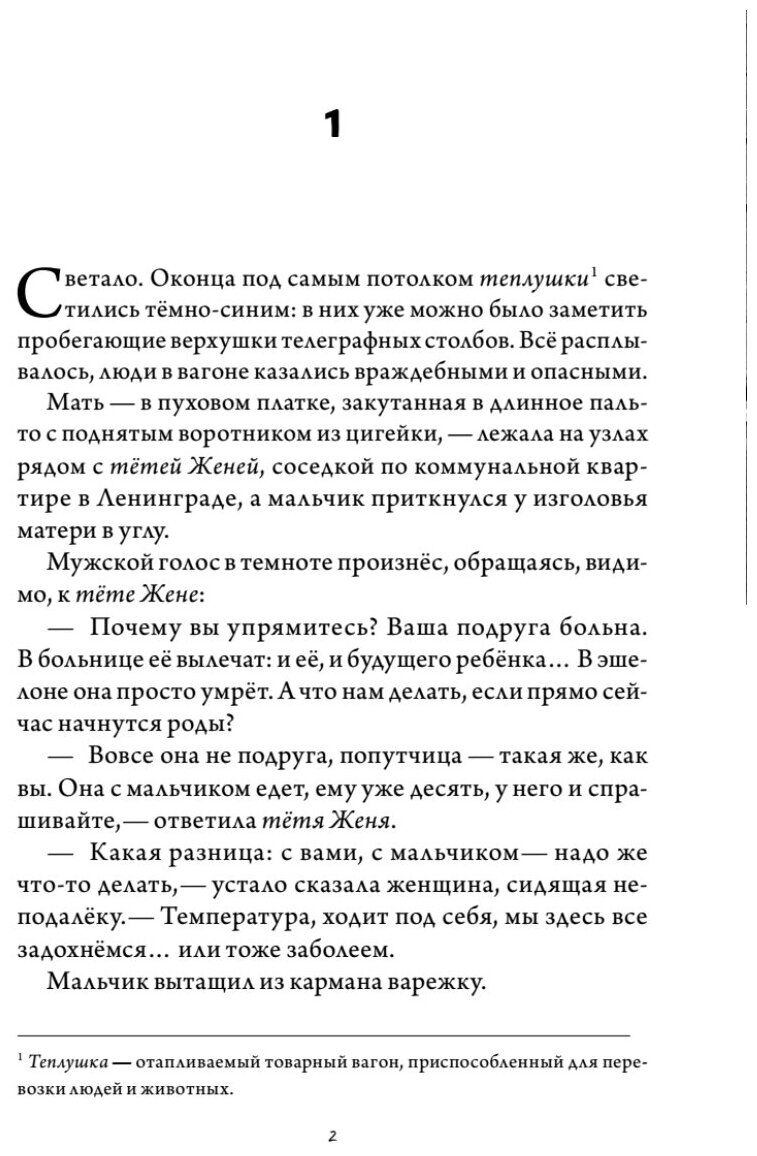 Повесть "Мужчина в доме", на самом деле не вполне ленинградская, несмотря на дополнительный подзаголовок. Хотя начало охватывает промежуток времени от счастливых предвоенных месяцев до зимы сорок первого, когда десятилетний Максим с сильно беременной мамой эвакуируется по дороге жизни. Вопреки надеждам, на этом их несчастья не заканчиваются. Нужно добраться до Свердловска, где живет бабушка. Маме до родов еще месяц, они должны успеть.