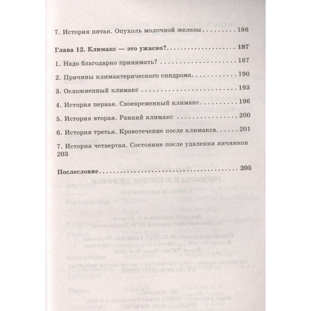 Каждая глава книги рассказывает об определенном симптоме (жалобе, с которой женщина обращается к врачу) и о том, какие процессы в организме могли стать причиной появления подобной жалобы.