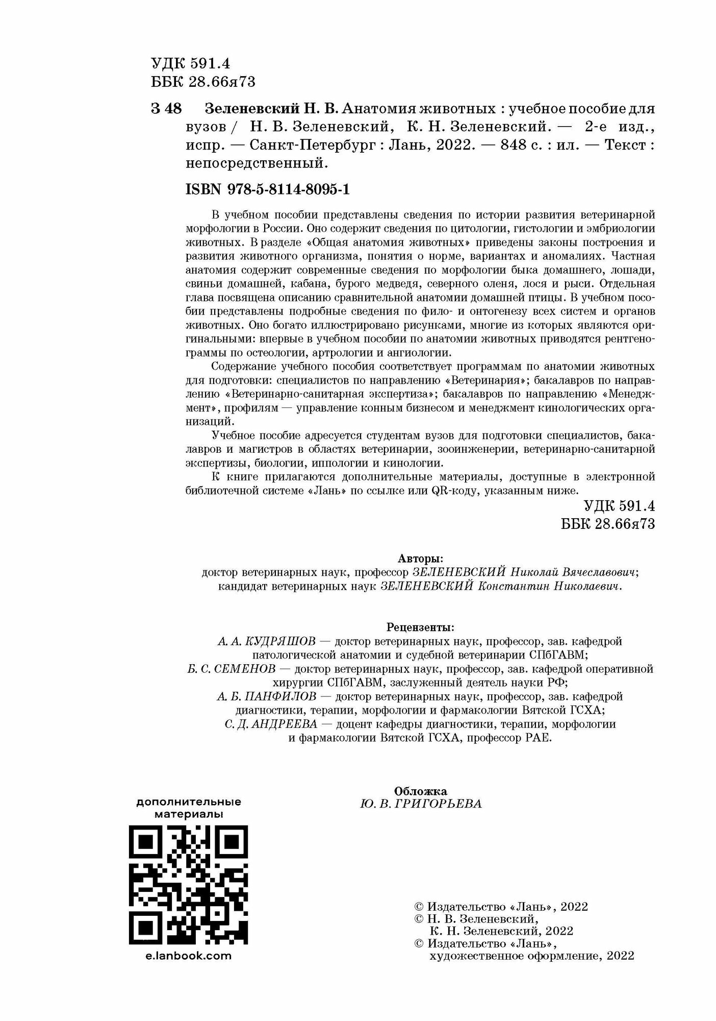 Анатомия животных Учебное пособие для вузов электронное приложение (Зеленевский Николай Вячеславович, Зеленевский Константин Николаевич); Лань, 2022