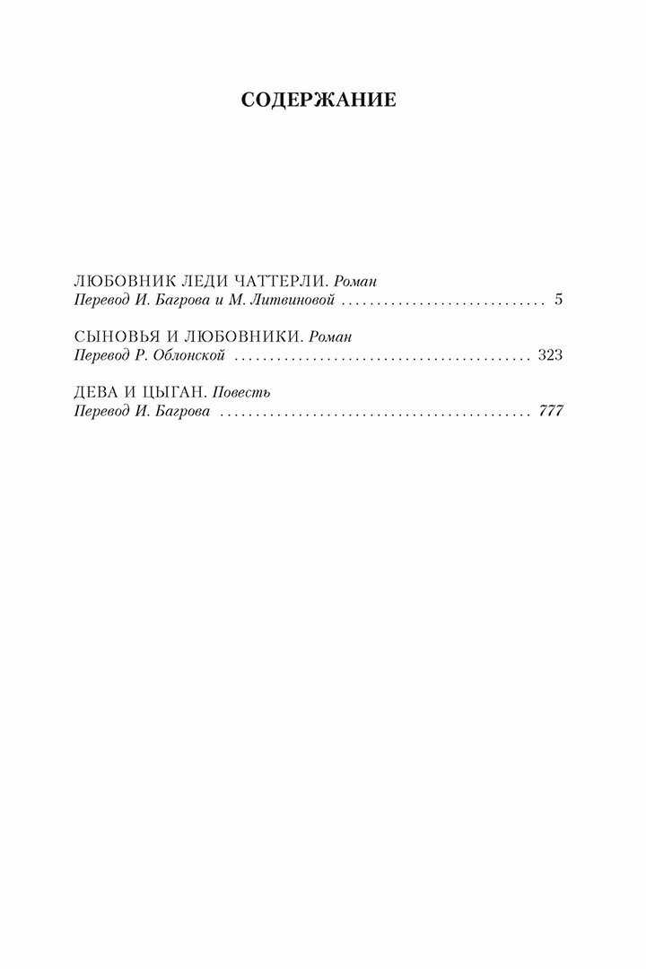 В настоящее издание вошли два лучших романа писателя — «Сыновья и любовники» и «Любовник леди Чаттерли», а также повесть «Дева и цыган».