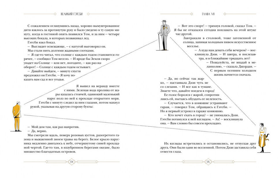 Прочитав книгу, мне показалось, что как-будто это черновик, общий набросок истории, а детали и сюжет еще предстоит проработать. Мне не хватило сюжета, но не могу сказать, что книга не понравилась от слова "совсем", с легкостью прочитала и даже за не закрученным сюжетом лежит мысль, что не стоит жить прошлым и дает возможность задумать о том как в одно мгновение может поменяться вся жизнь. Отдельно хотелось бы отметить оформление книги, очень приятная на ощупь и потрясающе оформлены иллюстрации к сюжету, они придают особую атмосферу при чтении "Великого Гэтсби".