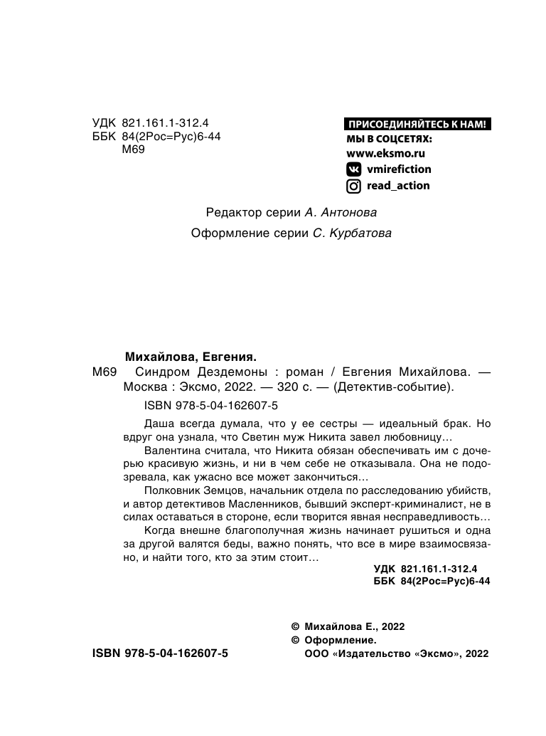 Книга: Синдром Дездемоны (Евгения Михайлова); Эксмо, Редакция 1, 2022