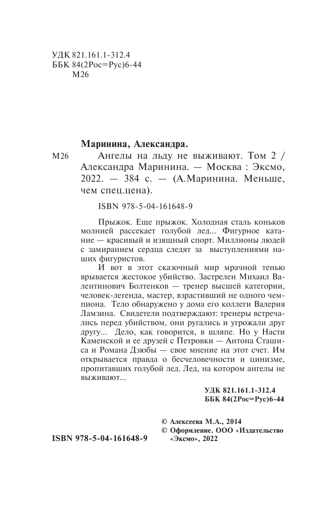 Ангелы на льду не выживают. Том 2 (Маринина Александра Борисовна); ООО "Издательство "Эксмо", 2022