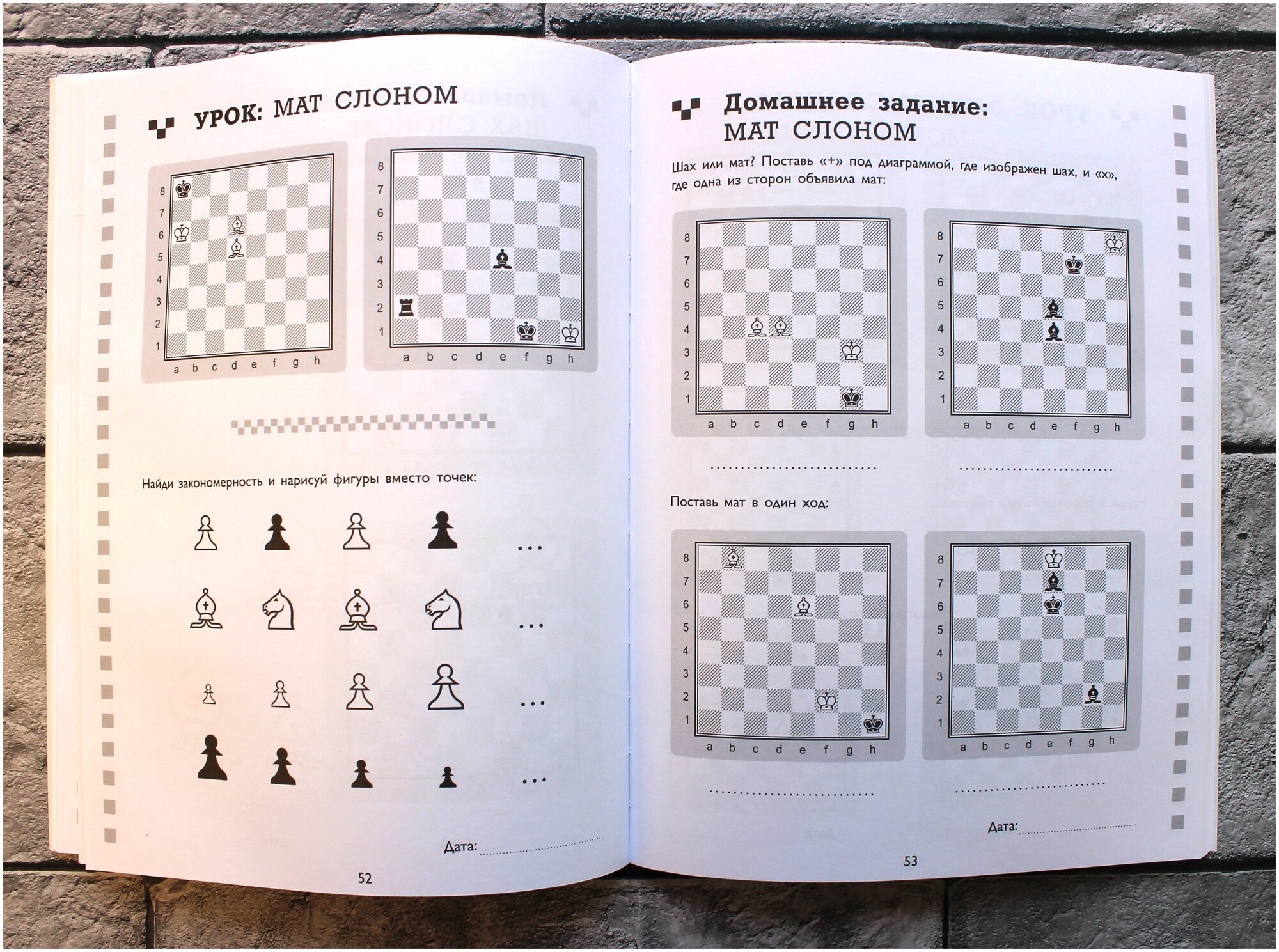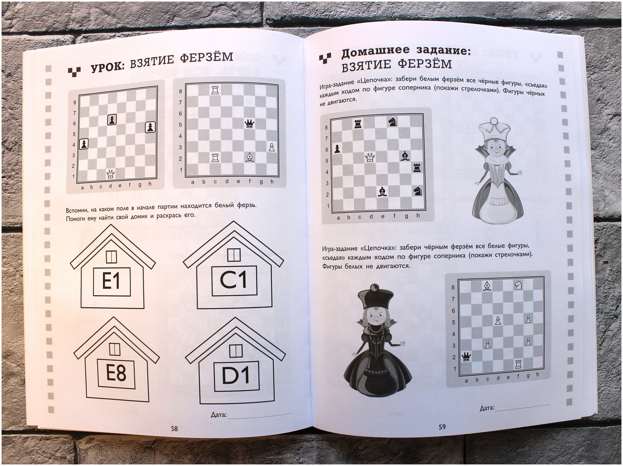 У меня сынок начал заниматься шахматами и эта рабочая тетрадь по шахматам, отлично способствует тому, чтоб закрепить полученные знания. Изложено все на понятном языке, задания в меру сложные, ребенок без проблем разбирается и сам. Видно, что продумано буквально все. В целом содержится 50 уроков с практическими занятиями. К покупке рекомендую смело.