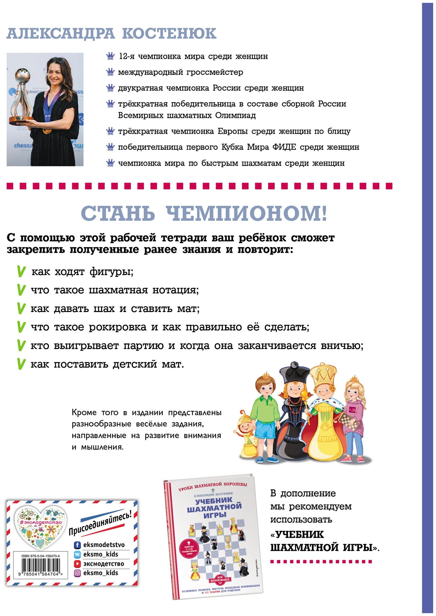 Рабочая тетрадь по шахматам. 154 практических задач для решения и 65 развивающих заданий (Костенюк Александра Константиновна); Эксмодетство, 2022