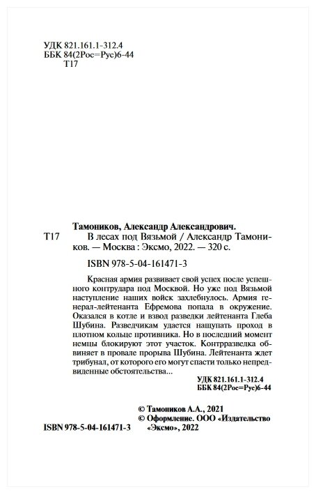 Сервис сравнения цен СкидкаГИД предлагает сравнить цены на товар «Книга: В лесах под Вязьмой (Александр Александрович Тамоников); Эксмо, 2022»