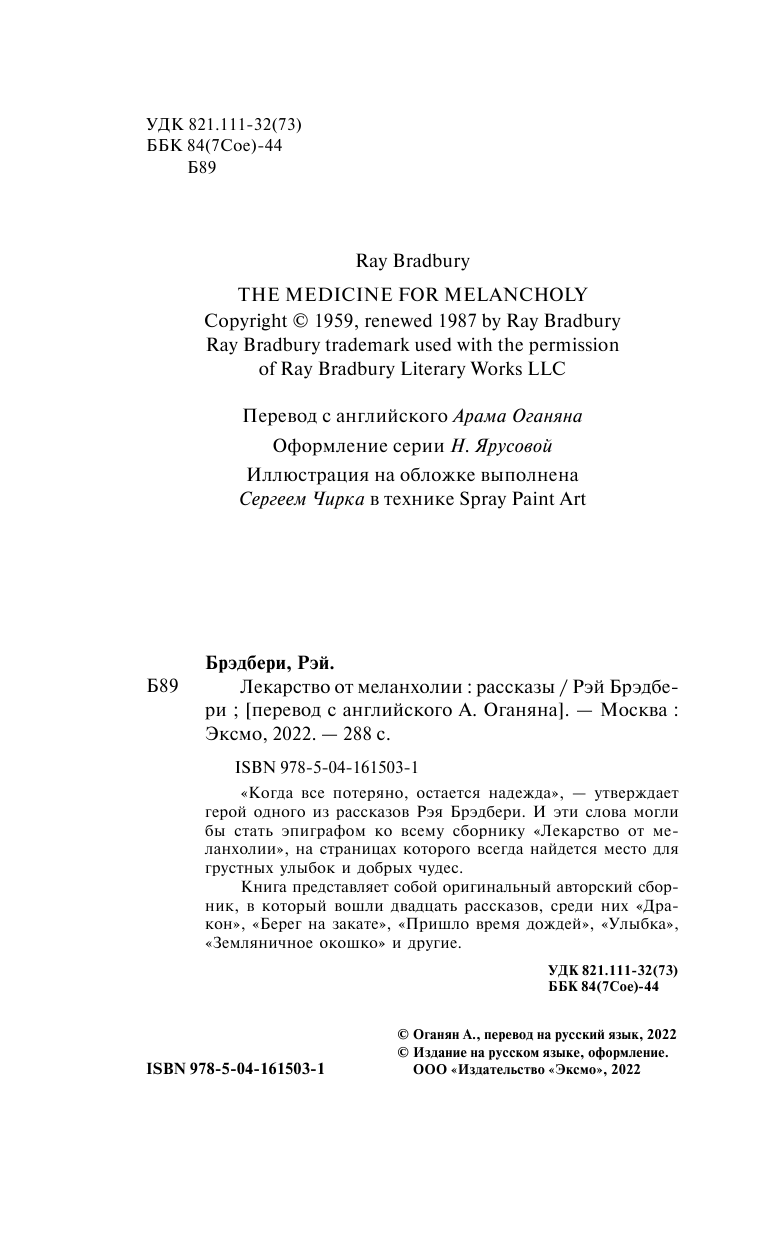 Книга: Лекарство от меланхолии (Брэдбери Рэй); ООО "Издательство "Эксмо", 2022