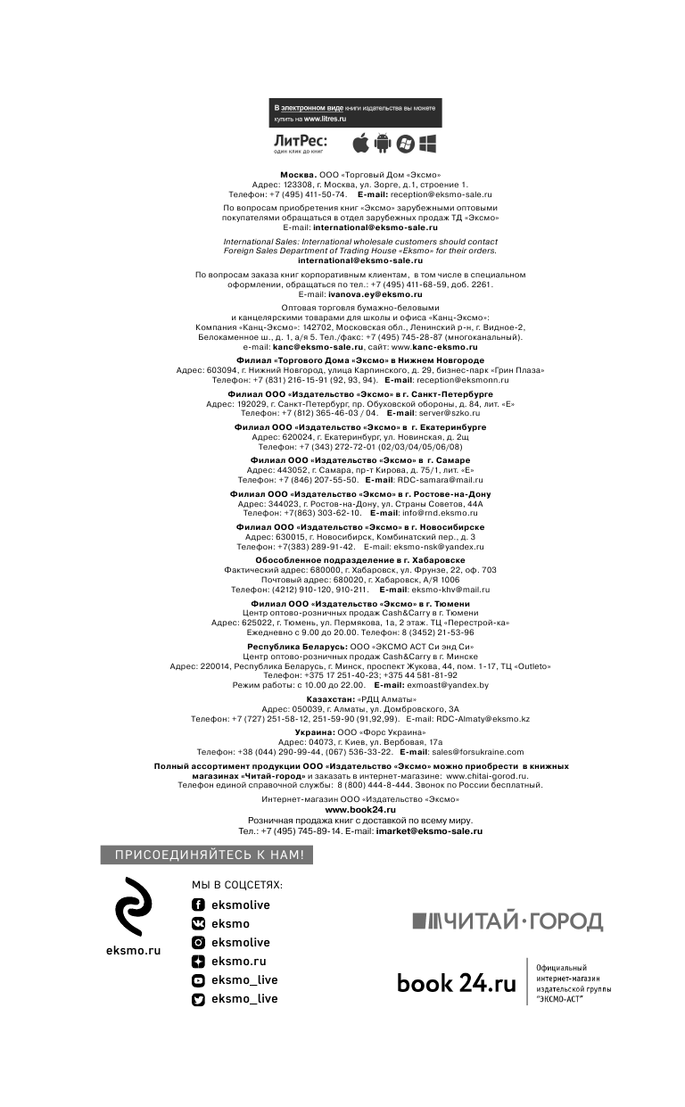 По данным нашего сервиса товар предлагался к продаже в 8 магазинах. На сегодняшний день доступен в 3 магазинах: Читай-город, Буквоед, book24. По цене от 239 р. до 289 р., средняя цена составляет 272 р., а самая низкая цена в магазине Читай-город. В случае, если для вас на данный момент цена слишком высока, вы можете воспользоваться сервисом «Сообщить о снижении цены» - мы оповестим вас как только цена опустится до желаемого значения. Но будьте внимательны, используя сервис «История цены» можно спрогнозировать в какую сторону изменяется цена, возможно сейчас самое время для покупки.