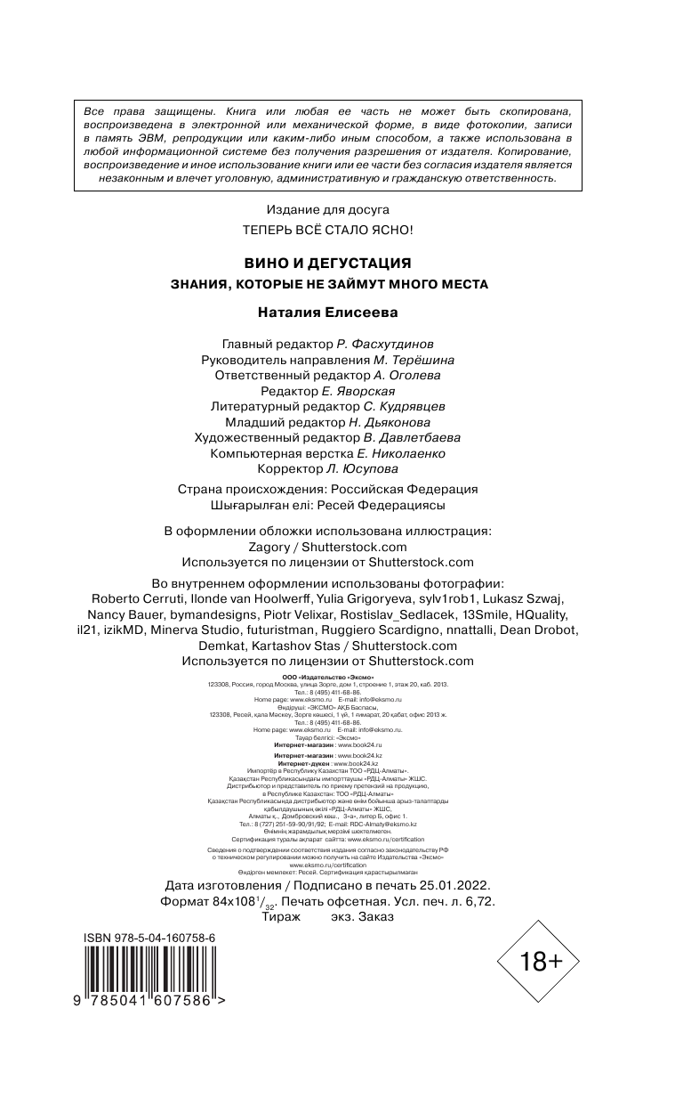 Вино и дегустация. Знания которые не займут много места (Елисеева Наталия Григорьевна); ООО "Издательство "Эксмо", 2022