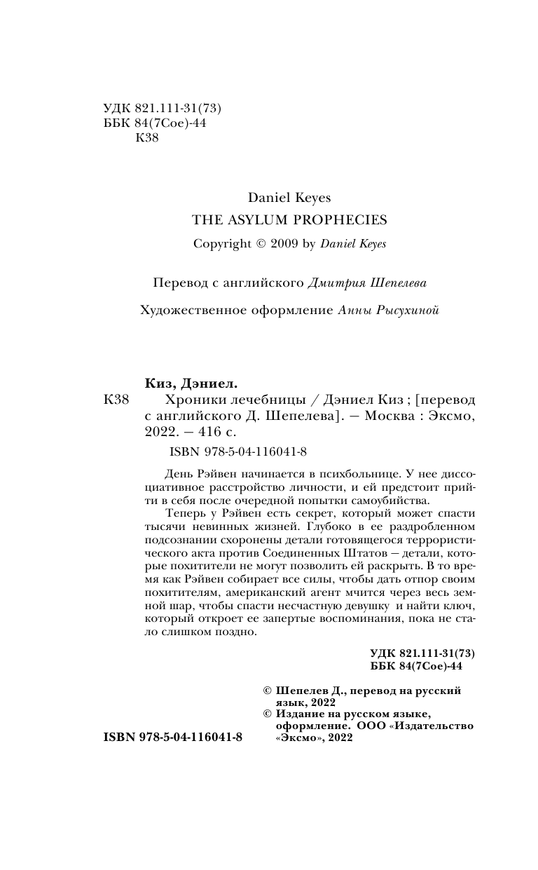 Книга: Хроники лечебницы (Дэниел Киз); Эксмо, Редакция 1, 2022