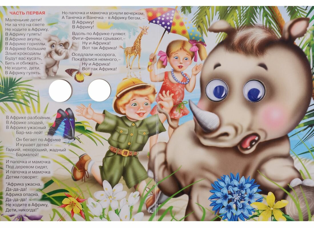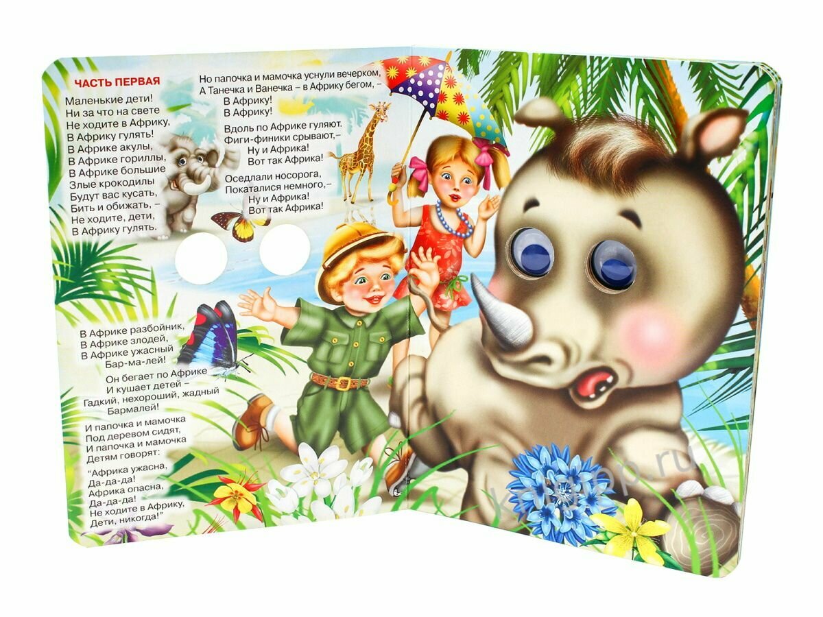 Красивая книжка, плюс в ней подвижные глазки, которые так нравятся малышам и благодаря им очень интересно читать и рассматривать картинки. Это известное стихотворение, которое не просто увлекает ребенка, но еще и помогает в вопросах воспитания. Книга очень важная и нужная.