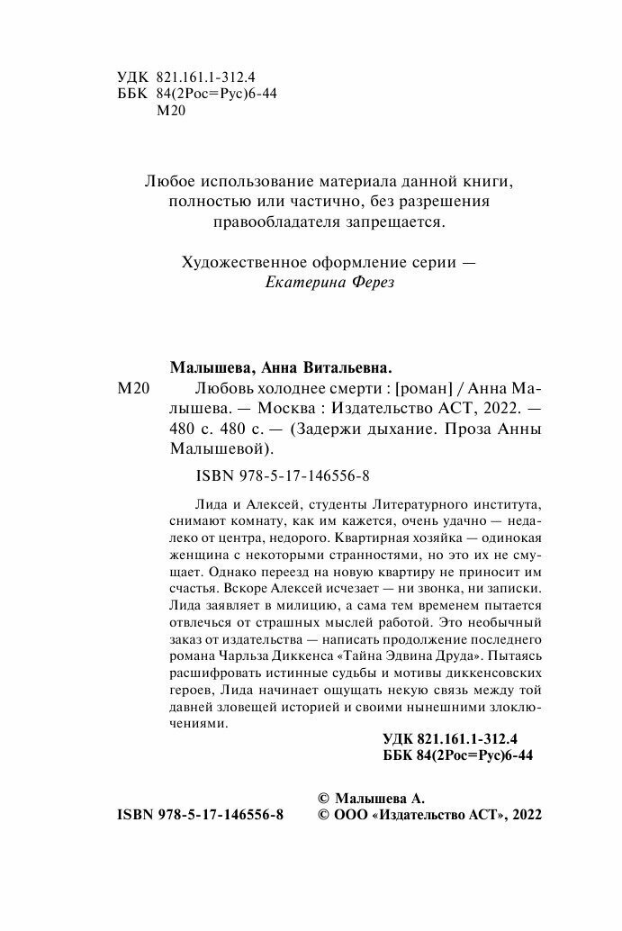 На сегодняшний день товар «Книга: Любовь холоднее смерти (Малышева Анна Витальевна); ИЗДАТЕЛЬСТВО "АСТ", 2022» можно купить с кешбеком в 3 магазинах: book24, Буквоед, Читай-город