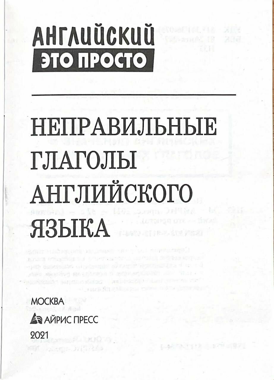 Приобретало эту книжку для того, чтобы учить неправильные глаголы. Книжка пришла без повреждений и в отличном состоянии. Покупкой очень довольна и я могу порекомендовать её приобрести, так как в ней содержится основные неправильные глаголы английского языка, которые необходимы для изучения грамматики английского языка. Книжка Карманного формата и очень удобно брать с собой в поездке и она всегда будет Под рукой.