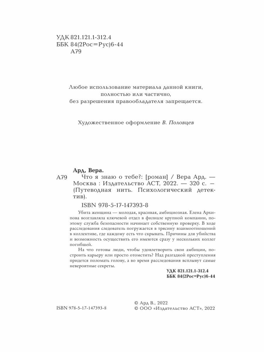 Книга: Что я знаю о тебе? (Вера Ард); ИЗДАТЕЛЬСТВО "АСТ", 2022