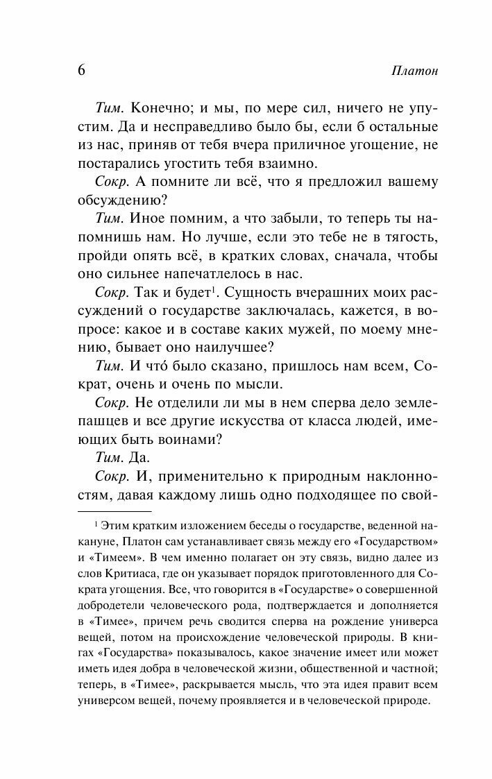 Собственно из четырехсот восьмидесяти страниц лишь сто шестьдесят посвящены непосредственно диалогам об Атлантиде. Остальные же диалоги о добродетелях, которые Платон приписывает Сократу. Тимей и Критий - касаются добродетелей, праведной жизни, государственного устройства и Антлантиды. Вообще эта самая Атлантида описывается как некое идеальное государство. Единственный источник - рассказы людей старшего поколения и жрецов. Так что ж на какую-то истину это совершенно не претендует. Тем более, что Атлантида описывается как некое государство устроенное по канонам вымышленного «Государства» самого Платона. Оставшиеся три сотни страниц диалогов о добродетелях по канонам Платона: длительные, неудобоваримые размышления, исходящие из аксиомы «разумное=правильное=божественное= то, что я вам доказываю».
