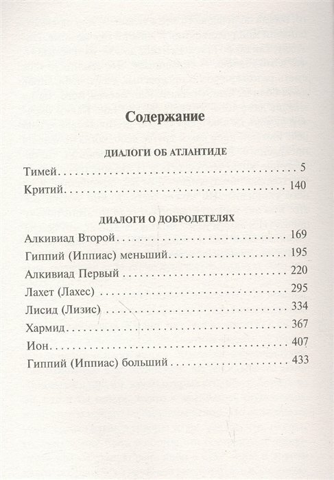 Философское произведение об Атлантиде. Из-за времени написания работа немного трудно читается, очень помогают сноски переводчика, поясняющие многие моменты. Книга также включает в себя Диалоги о добродетелях. Произведение станет приятным открытием для любителей античности и философии.