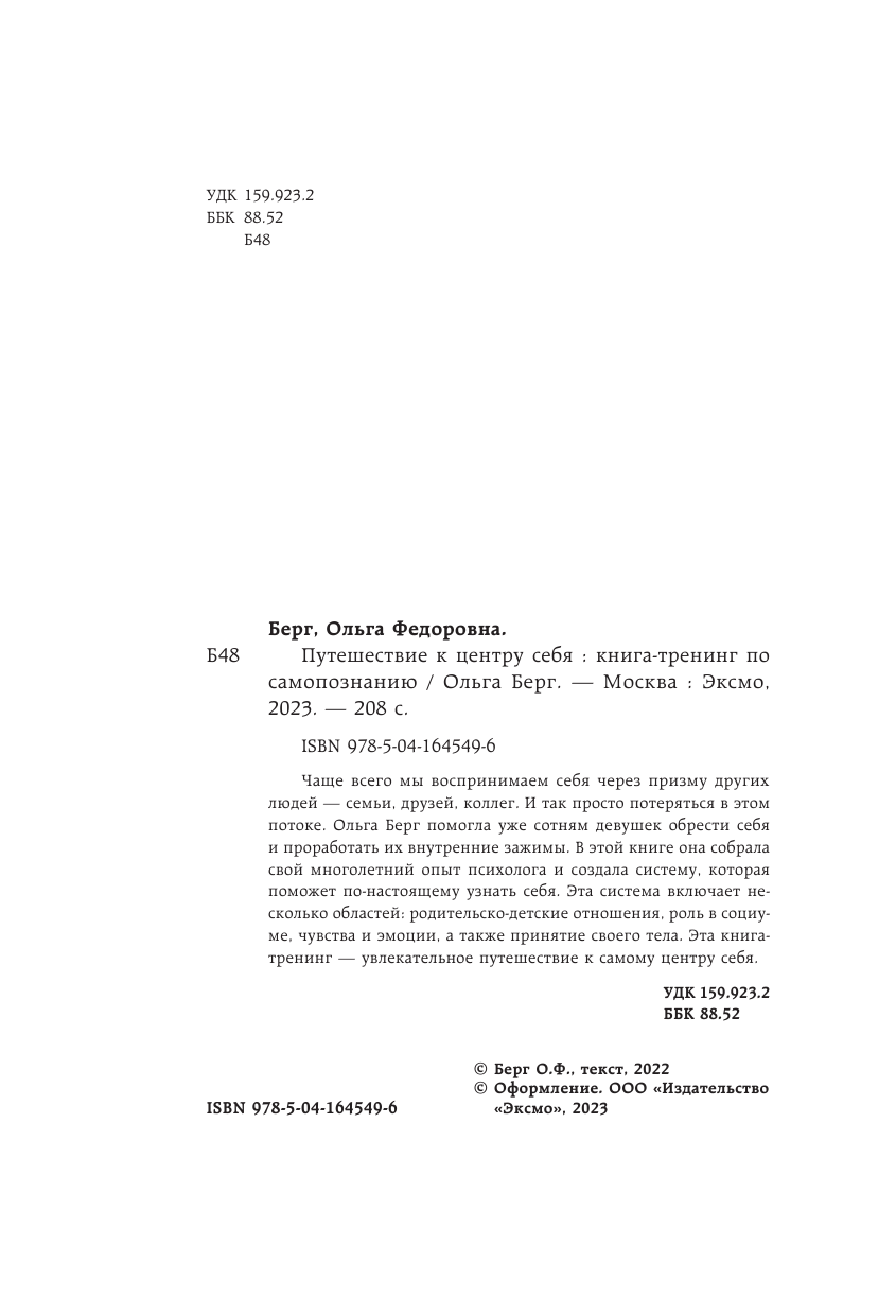 Путешествие к центру себя. Книга-тренинг по самопознанию (Берг Ольга Федоровна); БОМБОРА, 2022