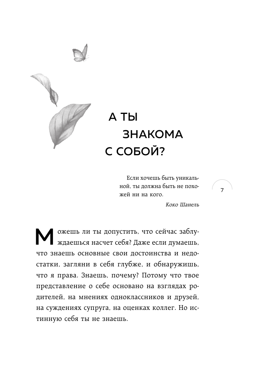 Несмотря на серьезную и важную тему поиска себя, очень легкая и приятная в чтении книга-тренинг, с которой можно работать по вечерам, отдыхая от тяжелого рабочего или учебного дня. Эта книга обладает поистине терапевтическим эффектом: пока выполняешь задания, незаметно успокаиваешься и даешь себе время побыть наедине с собой и своими мыслями. Благодаря тренингу я узнала много нового о себе и поняла, в каком направлении мне нужно двигаться. Совершенно точно могу посоветовать всем, кому хочется отвлечься от суеты и рутины.