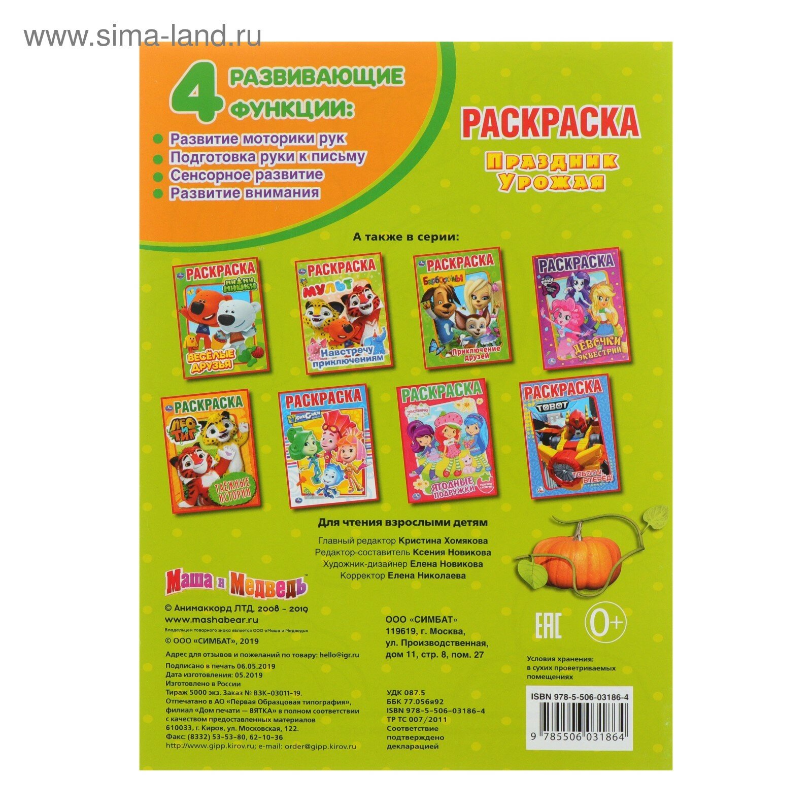 Книжка-раскраска «Маша и Медведь. Праздник урожая» из серии «Первая раскраска» ТМ «УМка» приглашает детей порисовать: