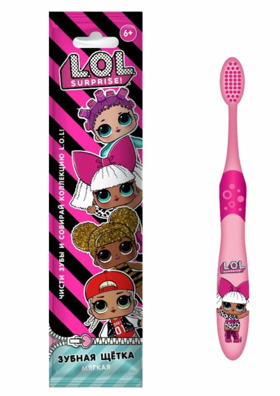 Вас ждет СЮРПРИЗ: разноцветная щётка с изображением одной из кукол L.O.L. Surprise! А какая кукла будет чистить зубки с вашим ребенком – это можно узнать только после того, как откроете упаковку.