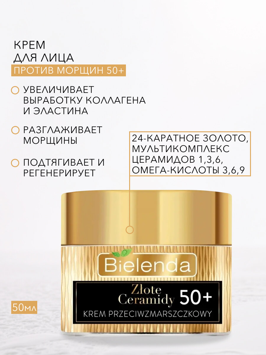 Крем для лица Bielenda Golden ceramides подтягивающий и регенерирующий 50+ 50мл