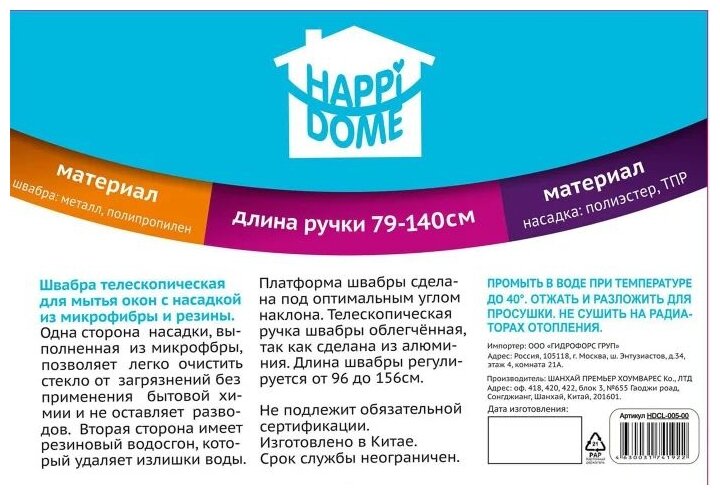 На сегодняшний день товар «Щетка для мытья окон Happi Dome 96-156см 33.5см HDCL-005-00» можно купить с кешбеком в 1 магазине: Яндекс.Маркет