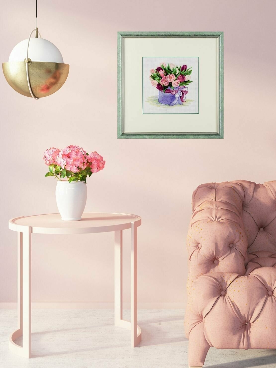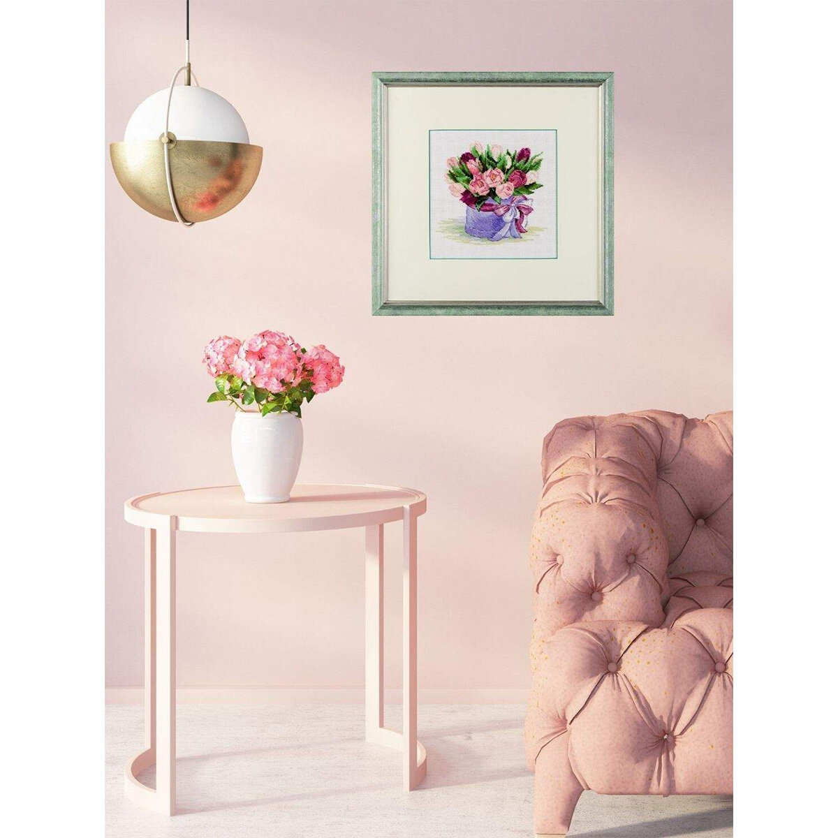 При кажущейся простоте техника 'крест' позволяет создавать настоящие картины богатой палитрой, плавными цветовыми переходами. Чтобы получился отличный результат, нужны качественные материалы, продуманная схема и терпение мастерицы. Вышивка 'Тюльпаны в шляпной коробке' поможет создать уютную атмосферу, удивит гостей и подарит вам репутацию умелой рукодельницы. В работе используется мулине 'полушерсть' – такие нитки позволяют плотно зашивать сетчатую канву, стежки получаются матовыми, достаточно объемными. Следуйте инструкции, выкладывайте равномерные стежки, и постепенно из-под вашей иглы начнет 'проступать' картина со сложной гаммой, плавными цветовыми переходами. Совет: если вам не хватает опыта, сделайте разметку канвы, ориентируясь по схеме. Разметка поможет вам быстрее закончить вышивку и избежать возможных ошибок. При необходимости осторожно постирайте вышивку вручную в прохладной воде с небольшим количеством мыла, чтобы не допустить усадки. В наборе: канва Aida Zweigart 14 ct белая (100% х/б), нитки (шерсть/акрил), игла, схема, инструкция. Количество цветов: 22.